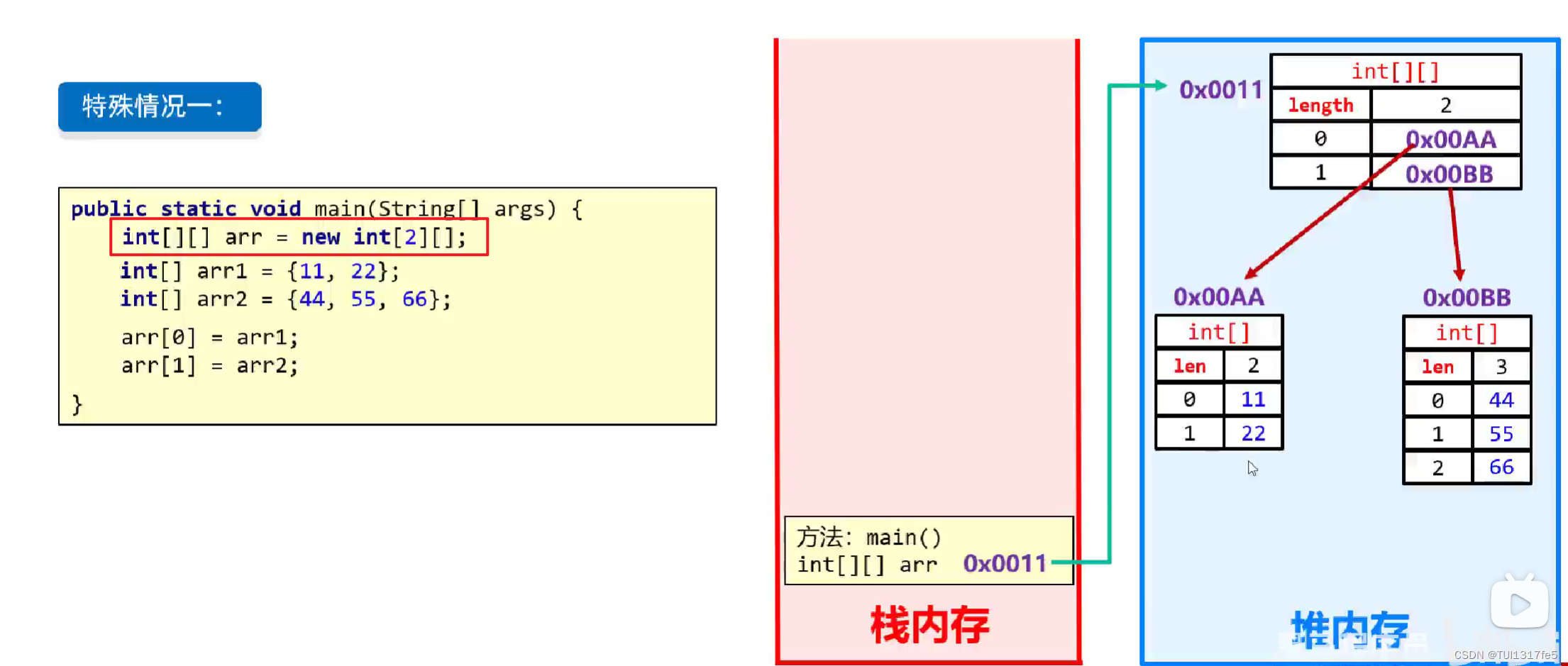 比如:int[] arr = new int[]{11,22,33};