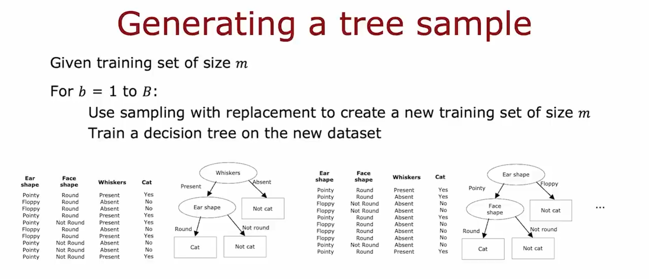 选出一个新的训练集,训练一个决策树;选出另外一个新的训练集,在训练一个决策树,就这样选出B个训练集,训练出B个决策树。