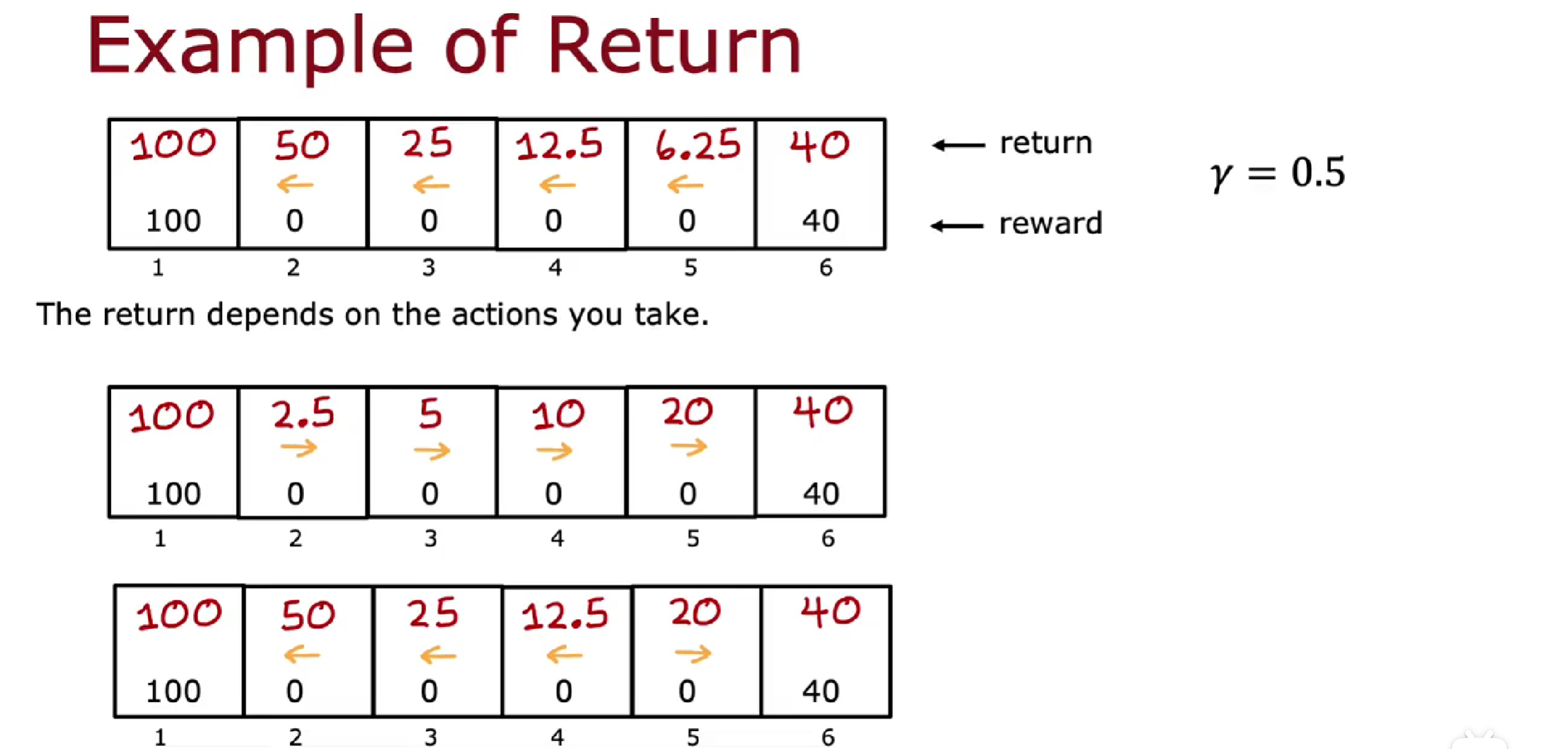 得到的回报取决于奖励,而奖励取决于你采取的行动,因此回报取决于你采取的行动。
