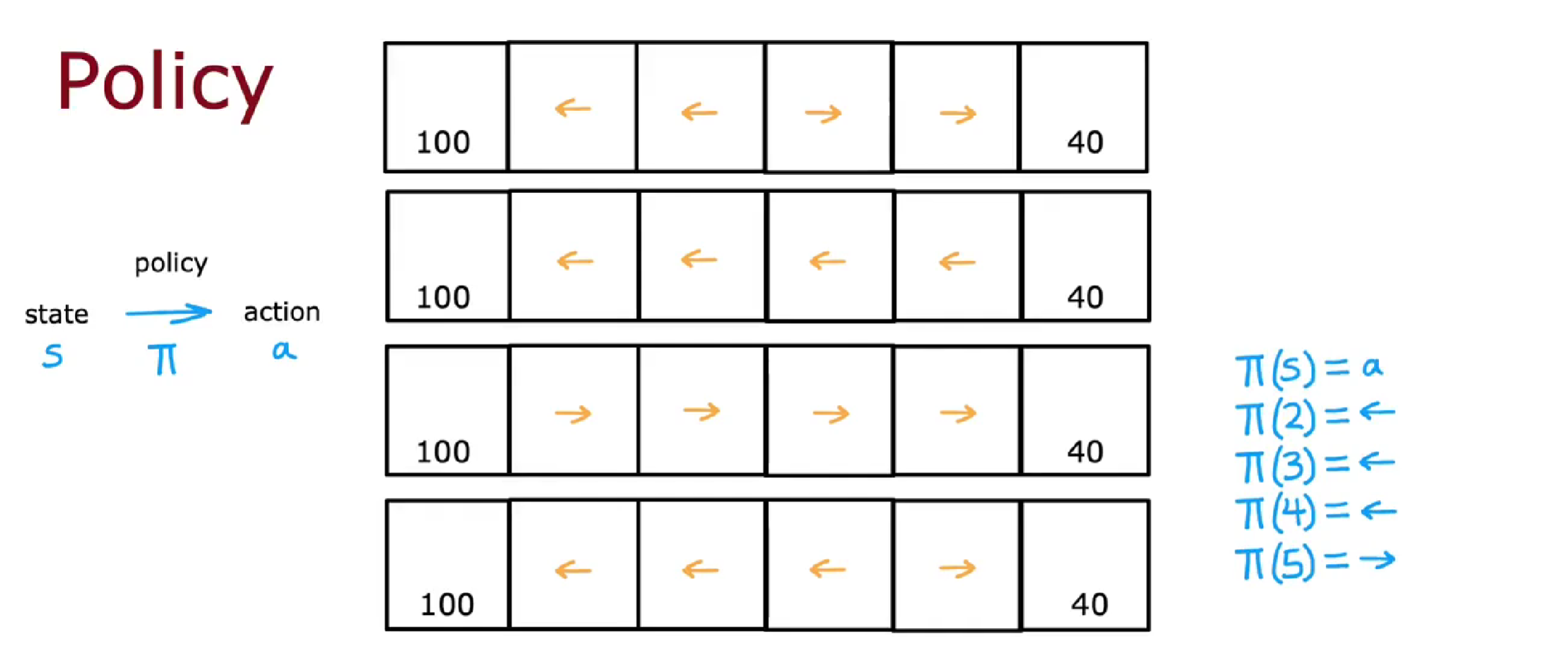 强化学习的目标是找到一个策略 $\pi$ ,告诉你在每个状态下采取什么行动以最大化回报。