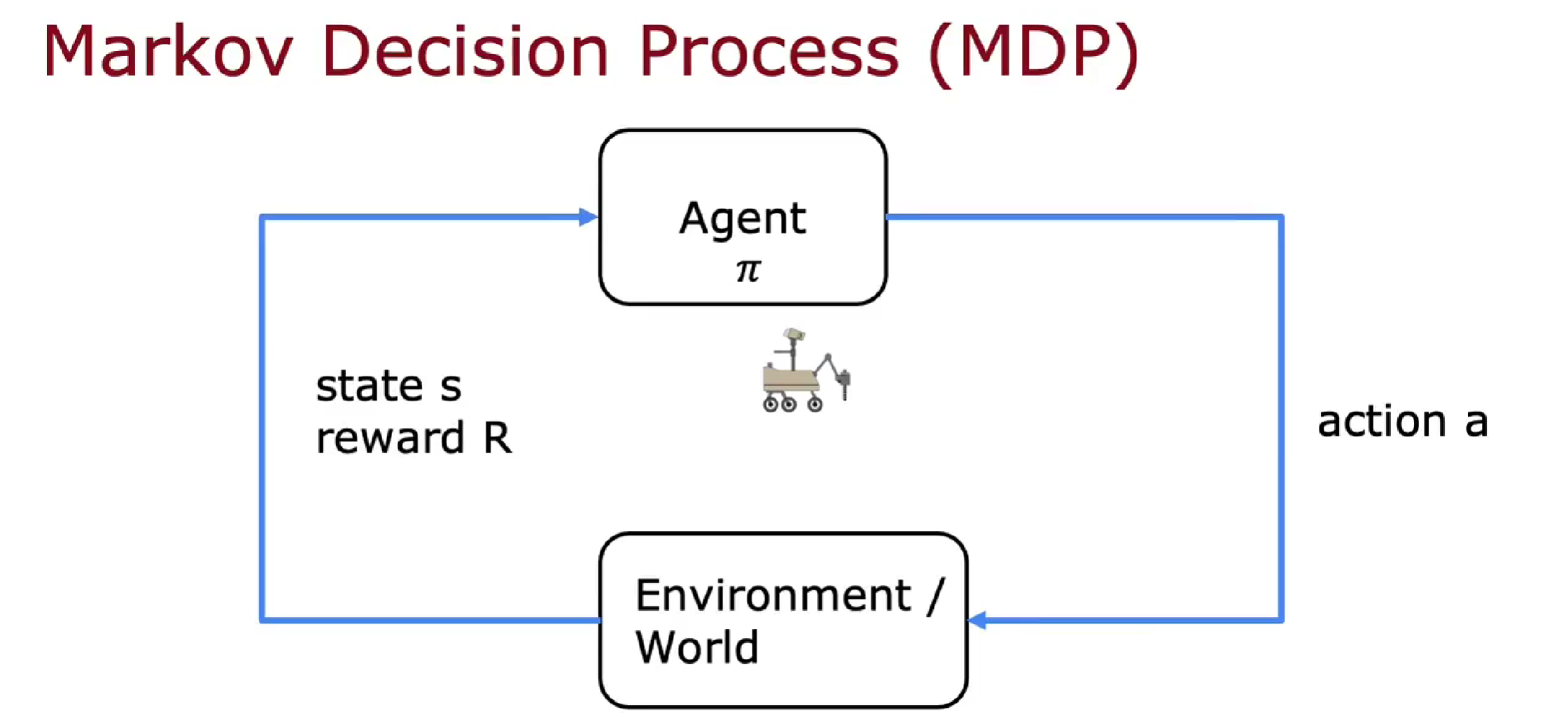根据目标当前状态 s,基于策略选择动作a,世界或环境会发生变化,然后观察基于世界状态,目标的状态s及得到的奖励R