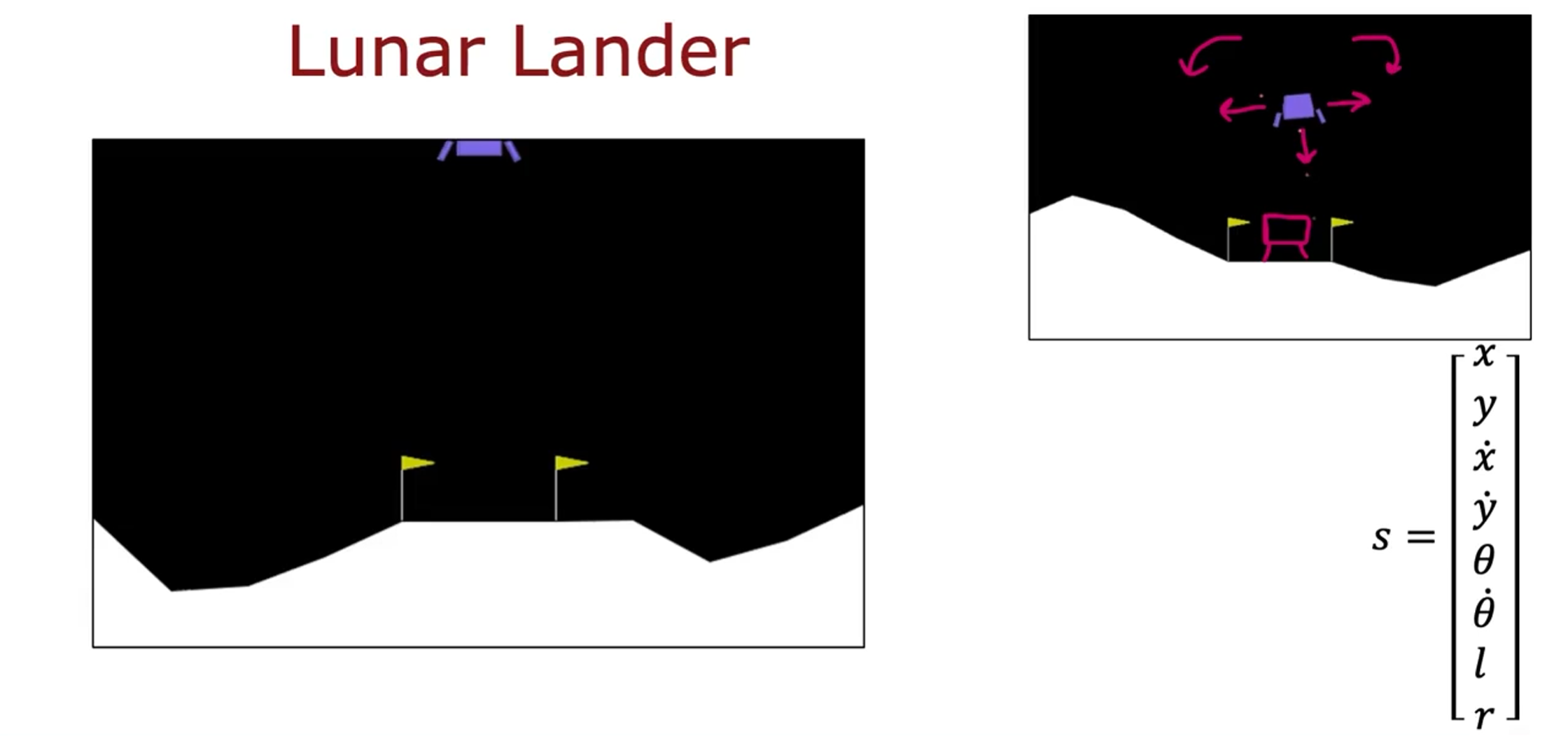 例如在自动控制汽车、飞机中,状态s都是连续状态空间,包含x,y,z轴坐标,及各轴方向上速度、角速度等,这都是连续状态空间