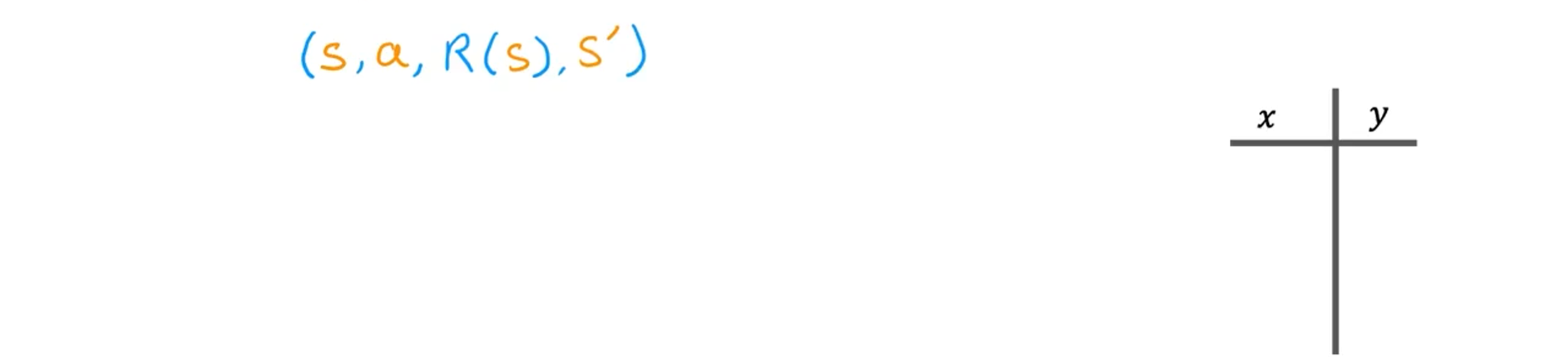 例如,也许有一次处于某个状态 $S^{(1)}$,采取了动作 $a^{(1)}$ ,得到了奖励 $R(S^{(1)})$ ,达到了个新状态 $S^{\prime(1)}$ ;