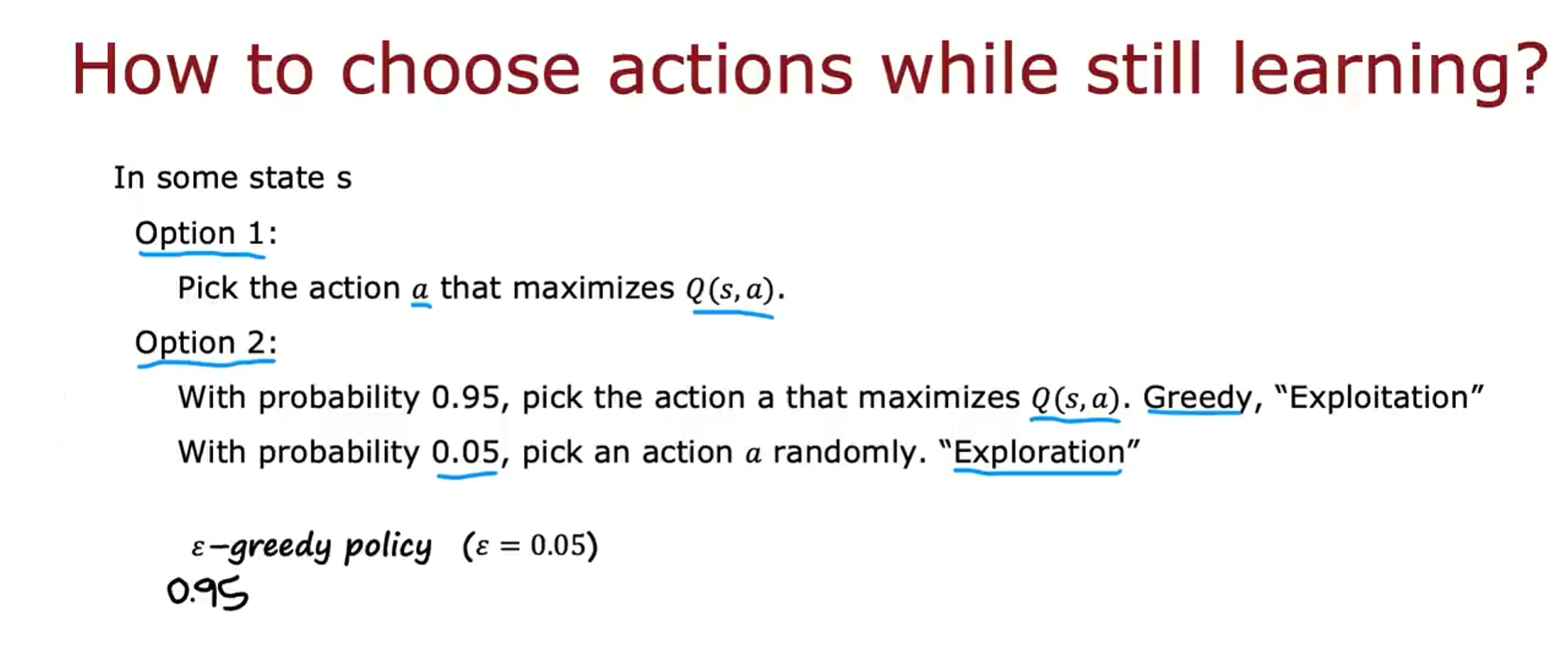 当ε=0.05时,贪婪动作占95%,探索动作占5%。
