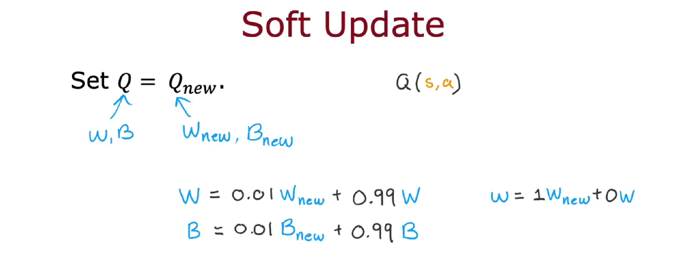 软更新通常使用一个超参数τ来控制更新的幅度,即通过对新参数和旧参数进行加权平均来更新目标网络的参数。