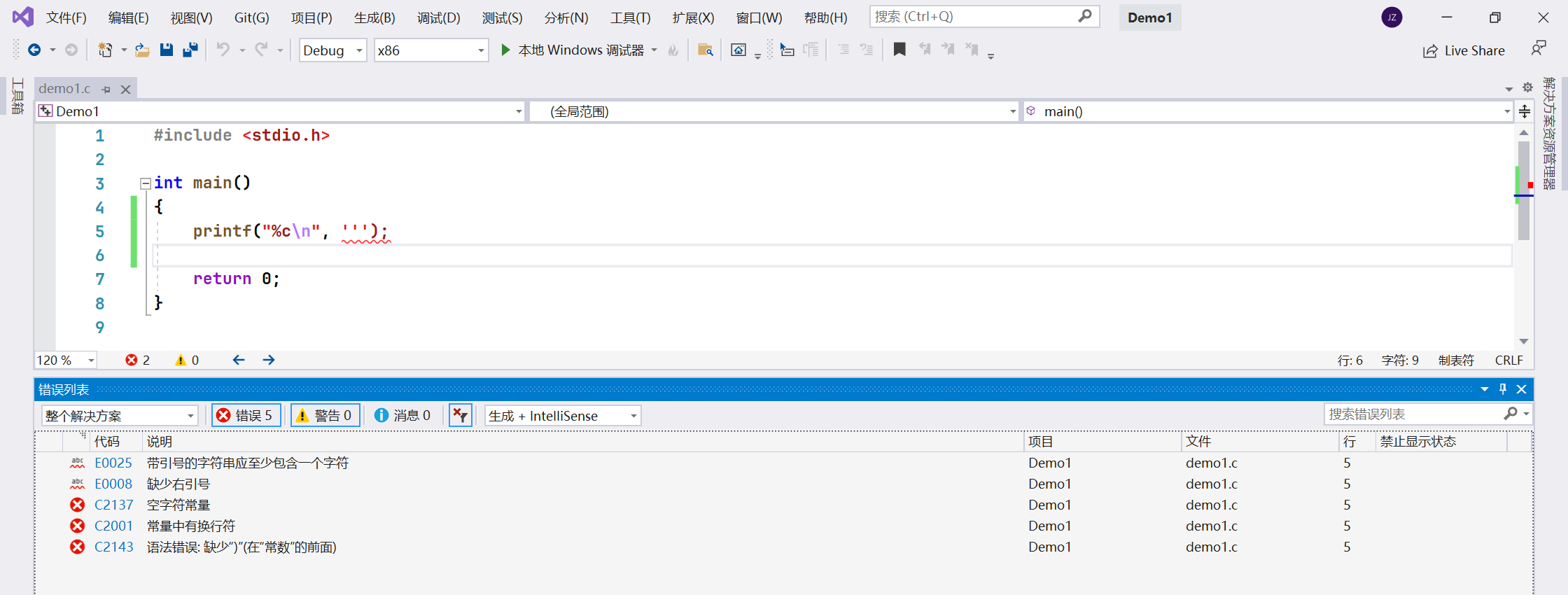 注: c语言中有字符类型没有字符串类型,若想存储需要放入字符数组中。