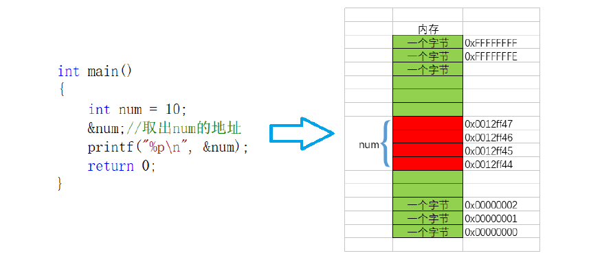 p中存的是地址值,对p进行解引用操作 *p ,找到指向的对象num ,* 即为解引用操作符。