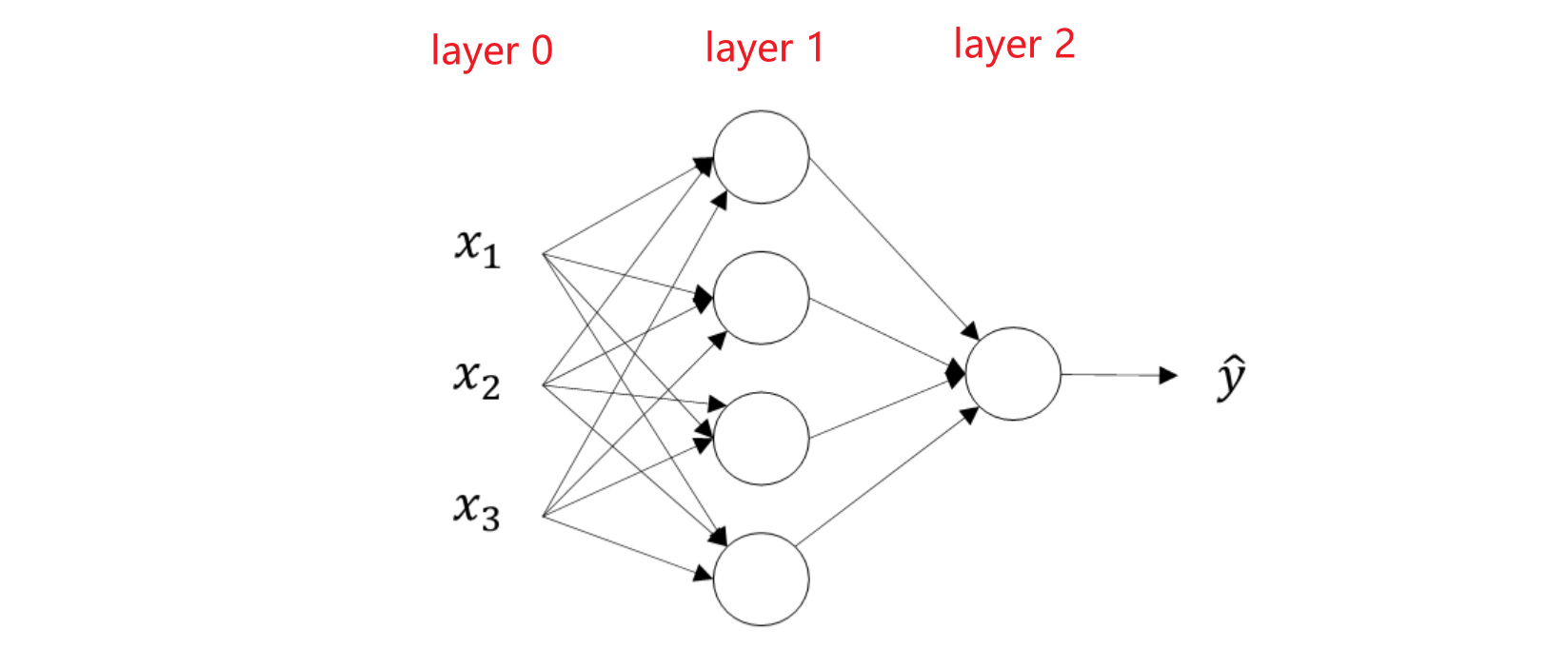 该神经网络为两层神经网络,一般我们不把输入层纳入神经网络的层数中,除输入层以外的所有层数总数为网络的总层数。