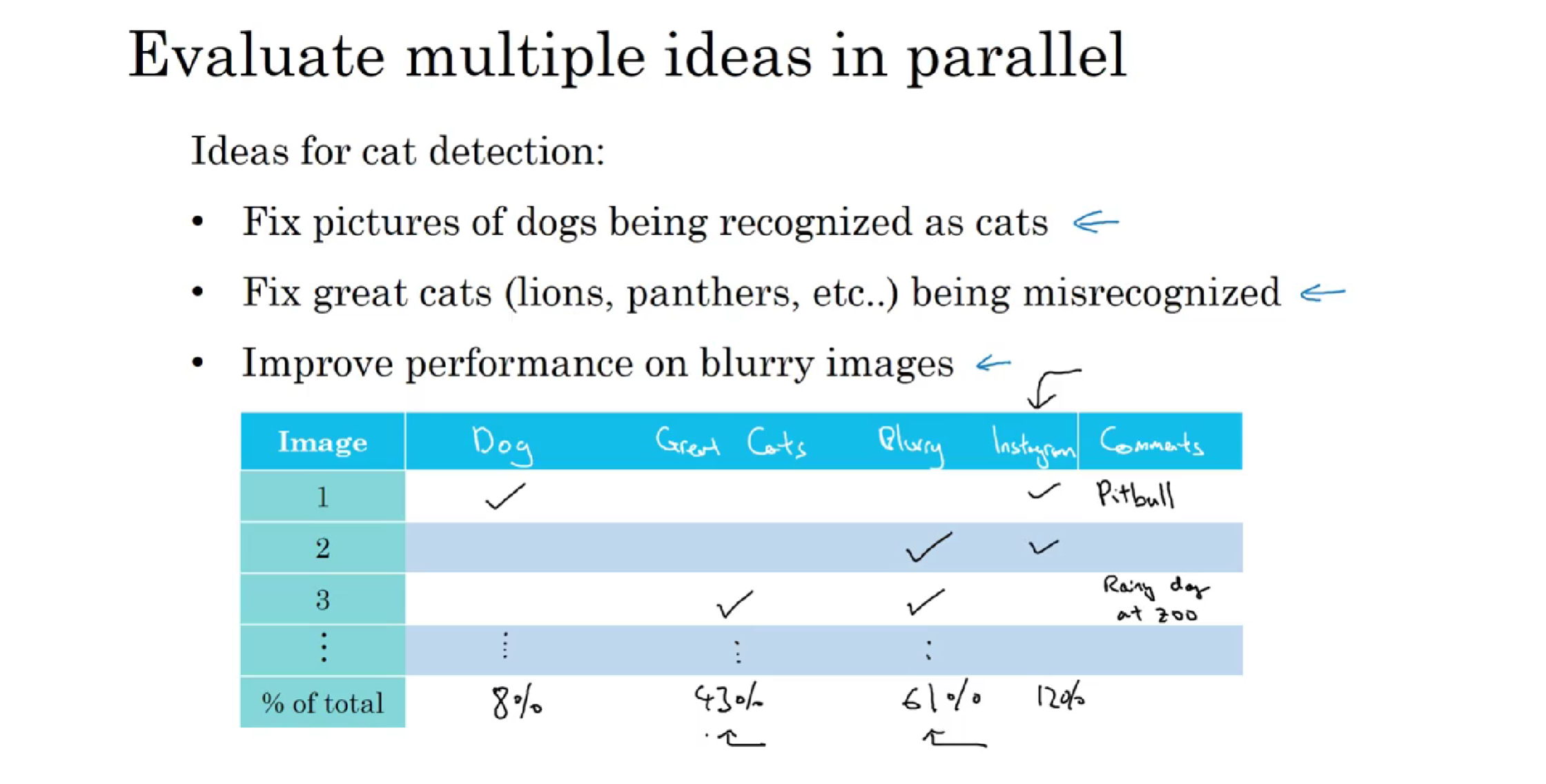 相反,如果错误样本中狗类的比重达到50%,那么改进后的模型的错误率有望降低到5%,改善效果很大。因此,在这种情况下,值得花费更多的时间扩大狗类样本。