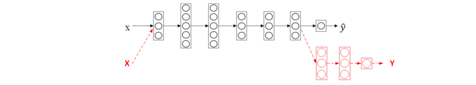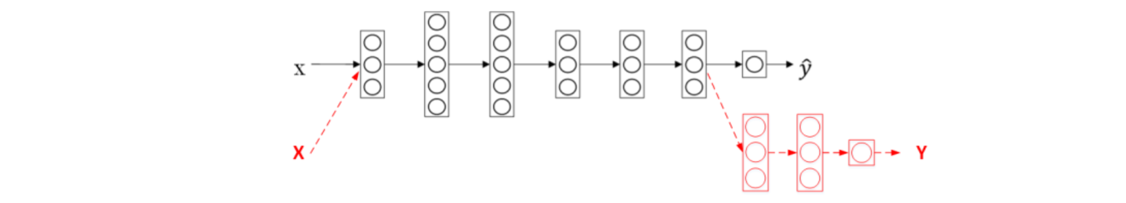 如果我们已经有一个训练好的神经网络,用来做图像识别。现在,我们想要构建另外一个通过X光片进行诊断的模型。迁移学习的做法是无需重新构建新的模型,而是利用之前的神经网络模型,只改变样本输入、输出以及输出层的权重系数$W^{[L]},:b^{[L]}$。也就是说对新的样本(X,Y),重新训练输出层权重系数$W^{[L]},b^{[L]}$,而其它层所有的权重系数$W^{[l]},b^{[l]}$保持不变。